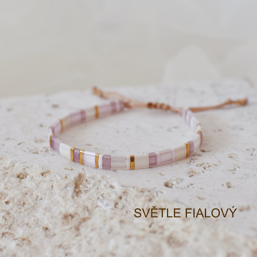 VAR. 1 Náramek Miyuki Tila světle fialový + korálek Růženín 4mm (RŮŽENÍN je kámen lásky, krásy, trpělivosti a životní energie)