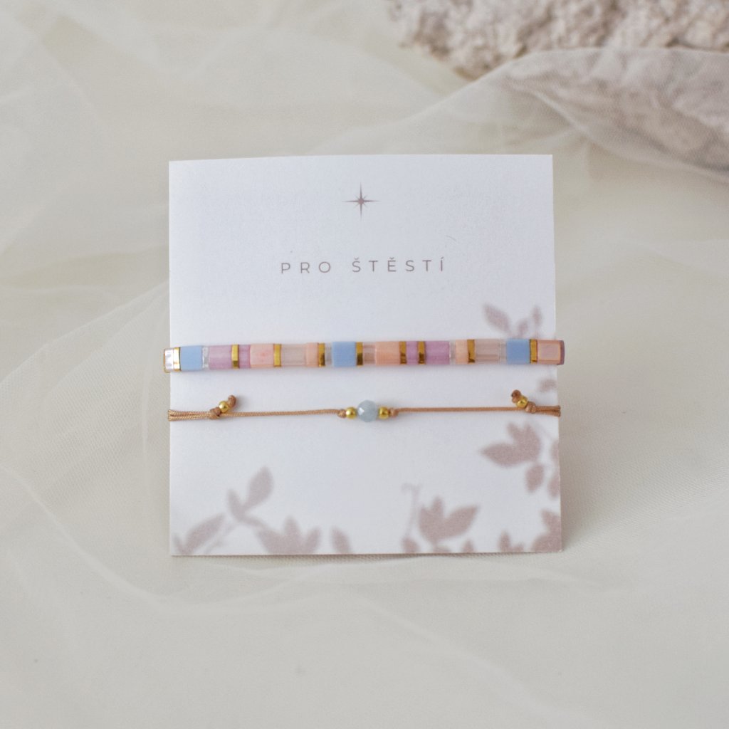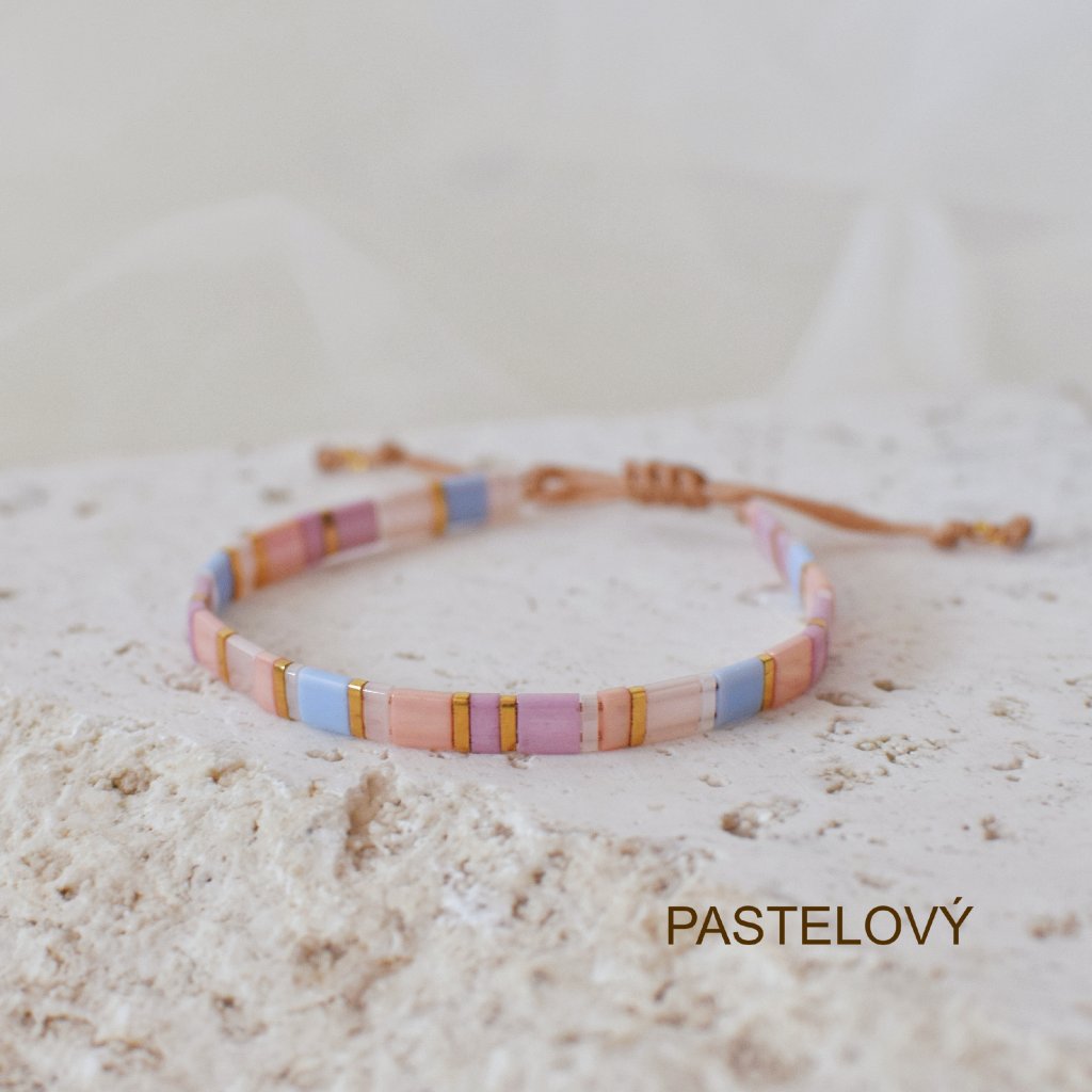 VAR. 3 Náramek Miyuki Tila pastelový + korálek Akvamarín korálek 4 mm (AKVAMARÍN je kámen odvahy, klidu a štěstí. Působí proti stresu a strachu)