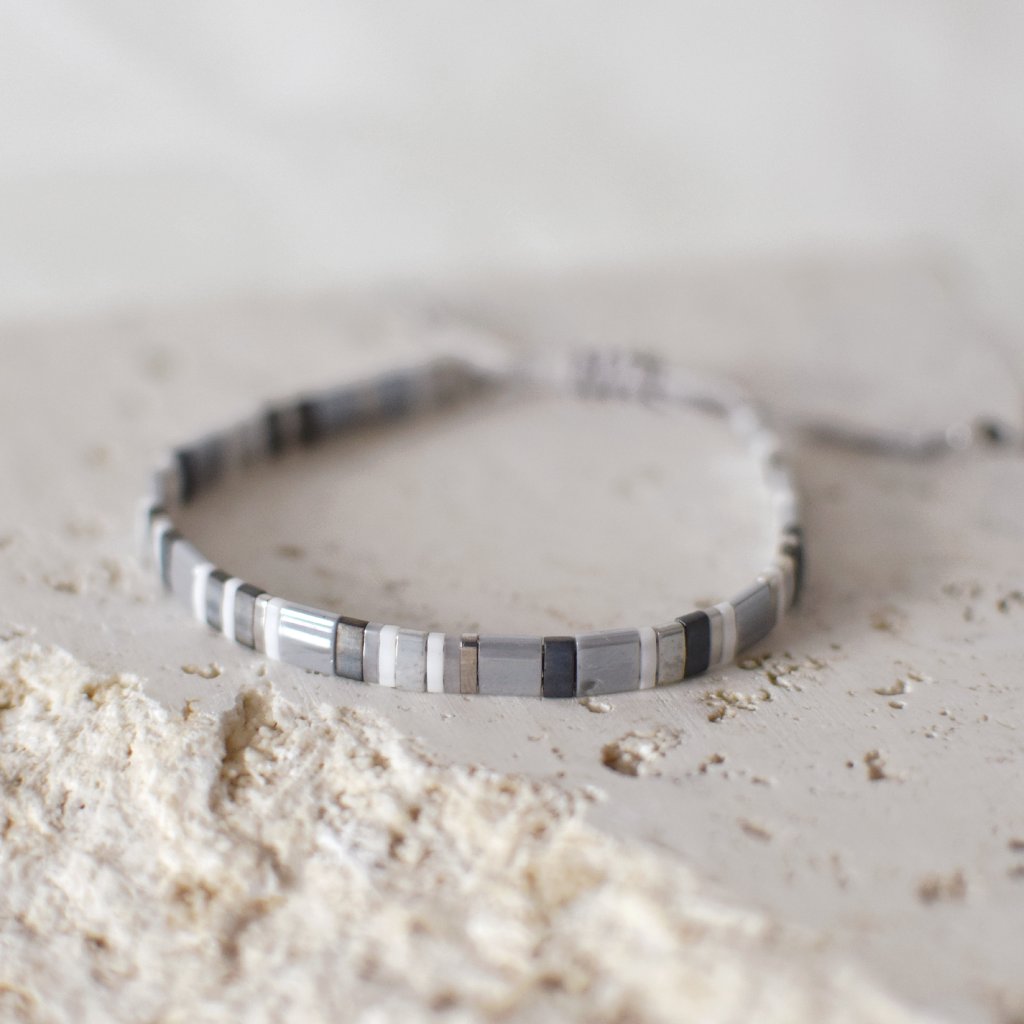 Korálkový náramek Miyuki Tila šedivý
