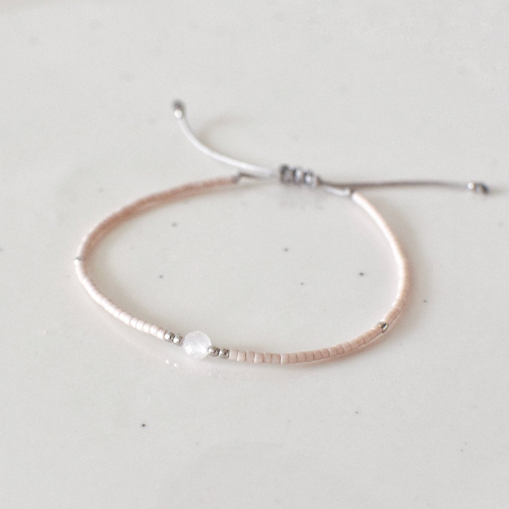 Komponenty: růženín broušený 4 mm, korálky Miyuki pudrově růžové barvy. Kuličky jsou ze stříbra Ag925/1000, rhodiováno (odolné vůči černání).