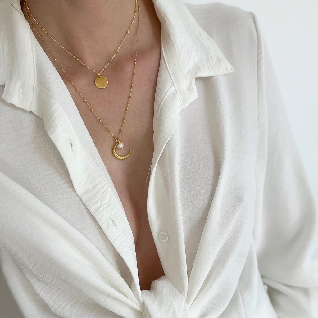 Náhrdelník s přívěskem měsíce a malinkou říční perličkou. - náhrdelník lze objednat i bez perly.