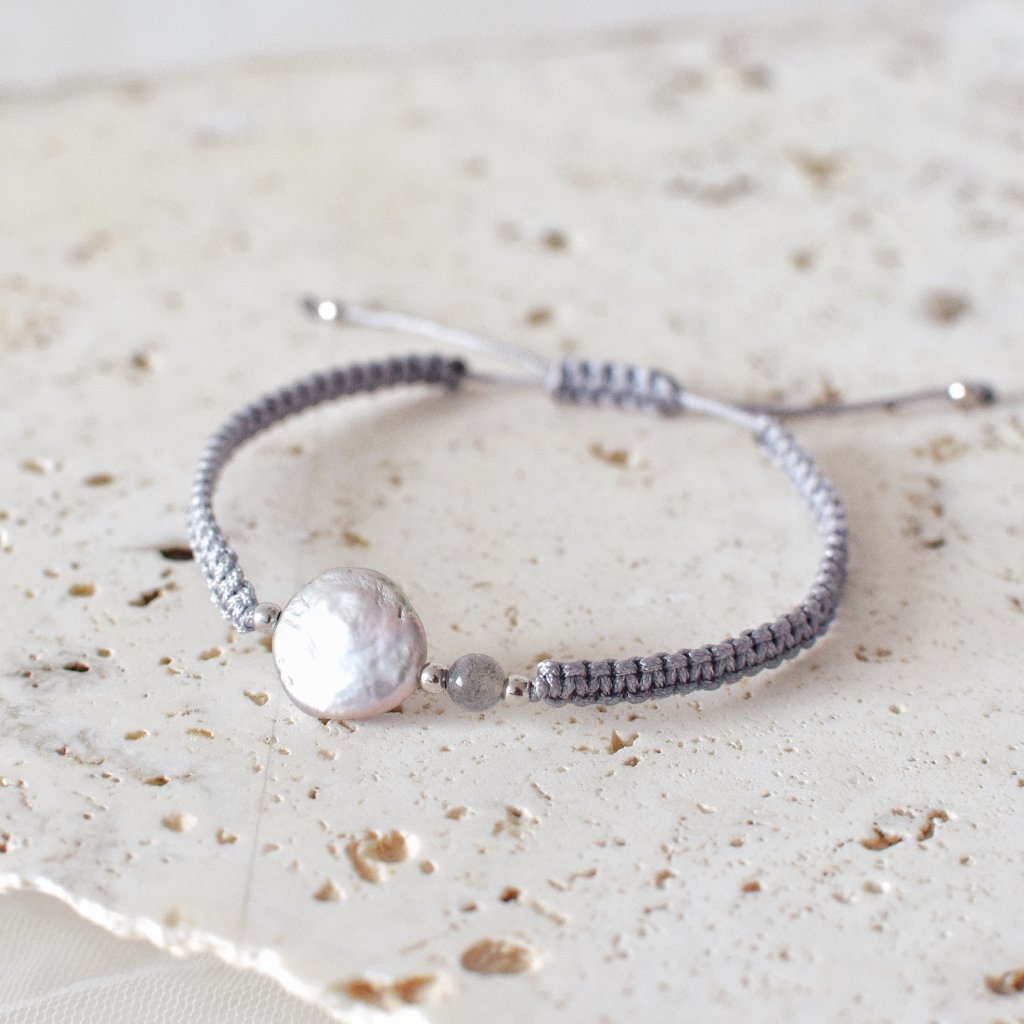 Náramek s šedou říční perlou a labradoritem