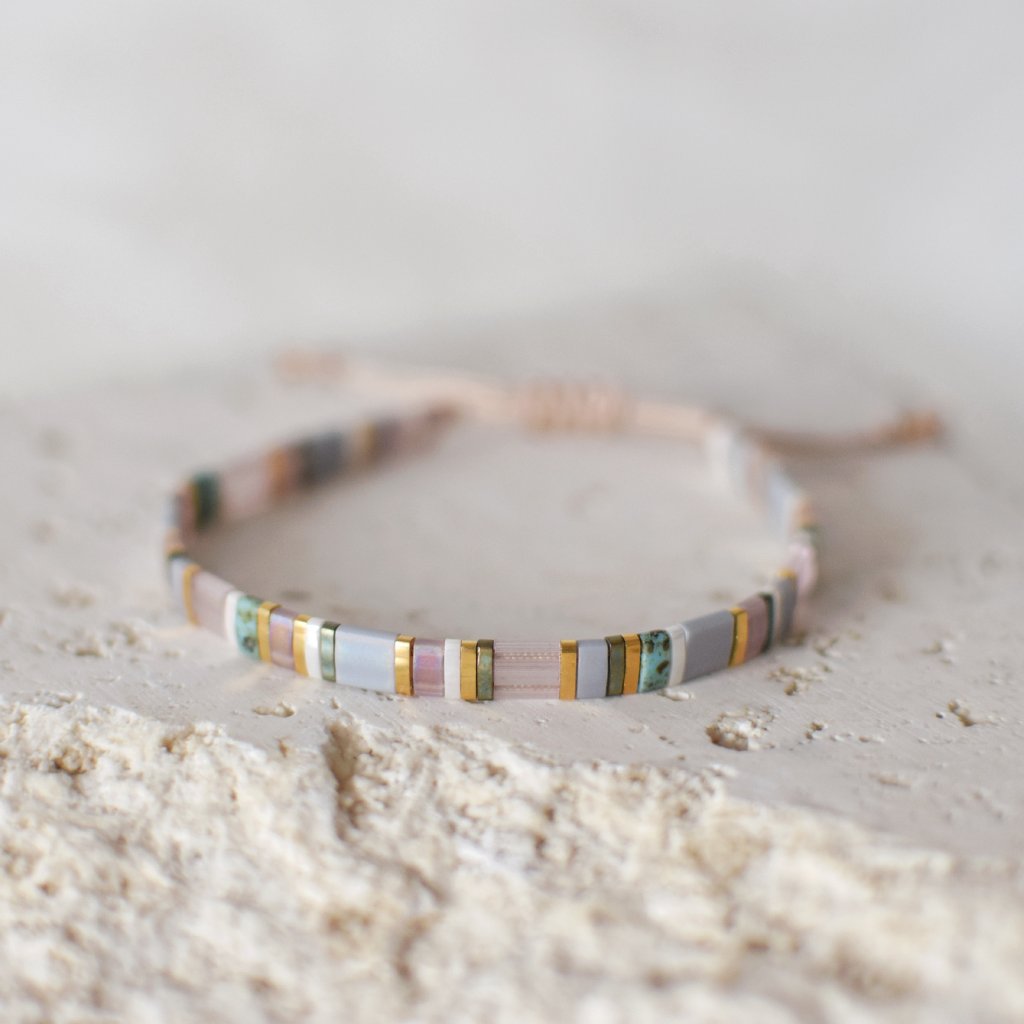 Náramek Miyuki Tila světle fialový. AKVAMARÍN je kámen odvahy, klidu a štěstí. Působí proti stresu a strachu.